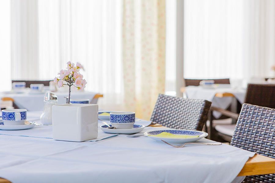Das reichhaltige Frühstück vom Buffet bietet eine große Auswahl an frischem Gebäck, Wurst, Schinken, Käse, Marmeladen und Honig sowie verschiedene Joghurts, Müsli, Säfte, frisches Obst und vieles mehr.