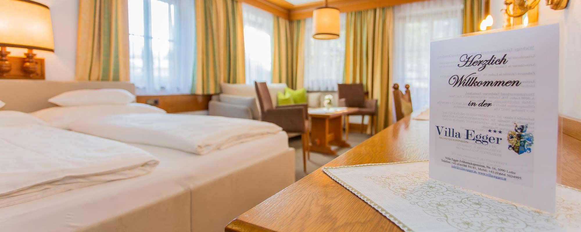 Zudem verfügen alle Zimmer unserer Pension Villa Egger in Lofer, die als Doppelzimmer oder Einzelzimmer buchbar und durch Zusatzbetten auf Dreibett- und Vierbettzimmer erweiterbar sind, über Flat-TV, gratis W-Lan und großteils Balkon.