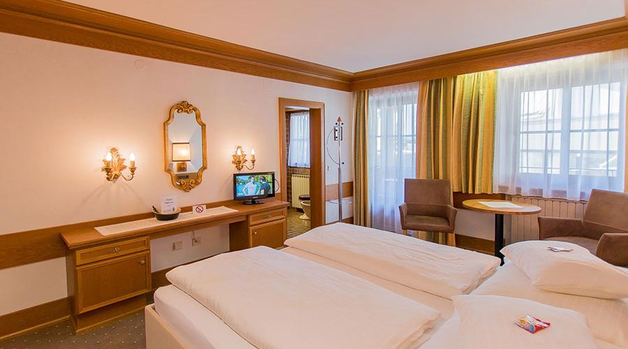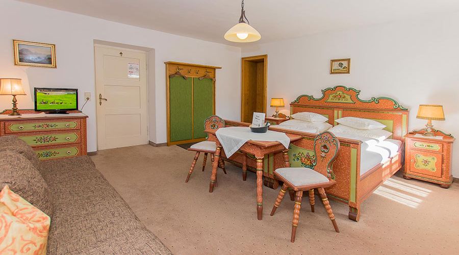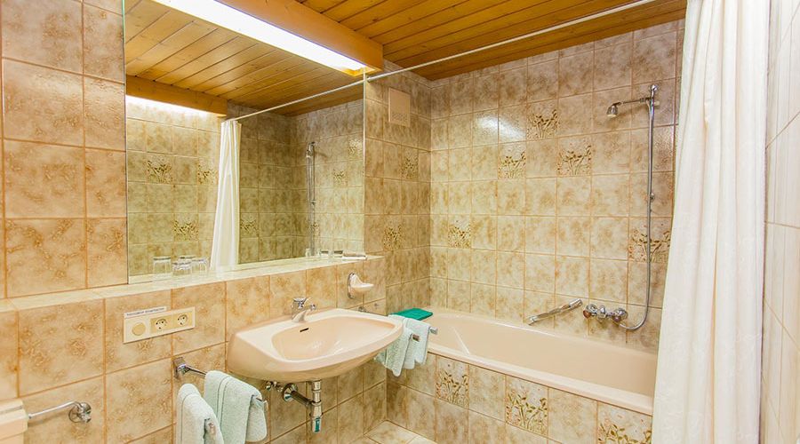 The comfort double rooms of our bed and breakfast in Lofer have a comfortable double bed, bathroom with shower/WC or bathtub/WC, flat-screen TV and free WiFi.