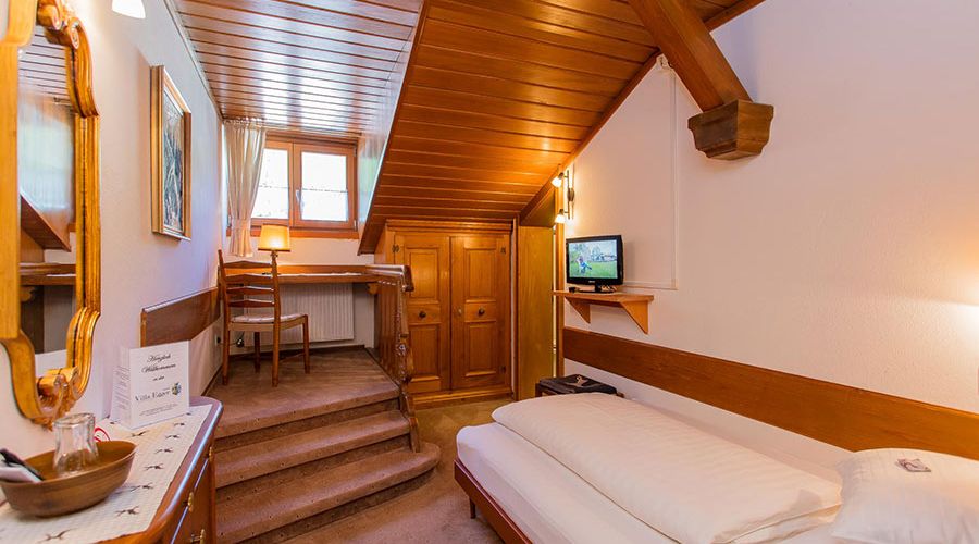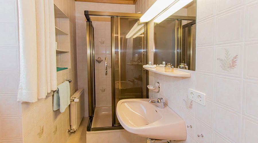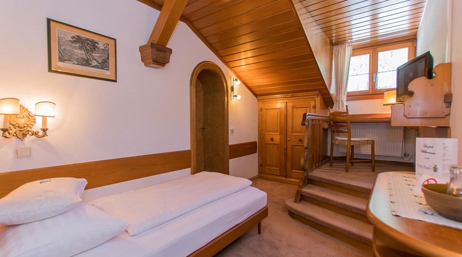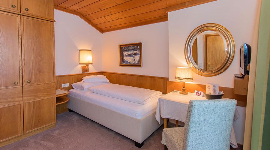 The friendly furnished single room in our bed and breakfast Villa Egger in Lofer has a comfortable single bed, bathroom with shower/WC or bathtub/WC, flat-screen TV and free WiFi.